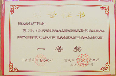 公司質量體系通過了德國萊茵公司ISO9001:2000質量體系換版認證,完成了體系換版工作;S6-90、QJ805變速器總成被評為重慶市名牌產品,4S-130GP獲齒輪行業優秀新產品特等獎;QJ806、QJ1506獲得齒輪行業優秀產品優秀獎;完成投資9500萬元的第一期技術改造,形成年產60000臺變速器生產能力。公司生產經營再創歷史新高,全年完成汽車配件值61444萬元,產出重型變速器總成31852臺、錐齒輪110609套,實現銷售收入40052萬元,入選中國100家"最佳汽車零部件供應商",躋身中國機械500強。